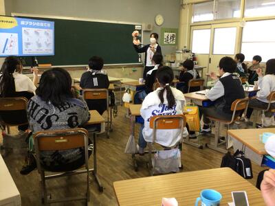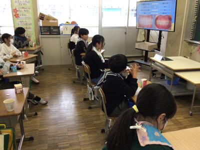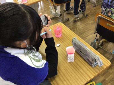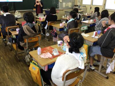 6年生が歯科衛生指導の授業を受けました。歯の学習ということもあり、授業前には、みんな歯磨きタイム!歯をきれいにして、いざ!